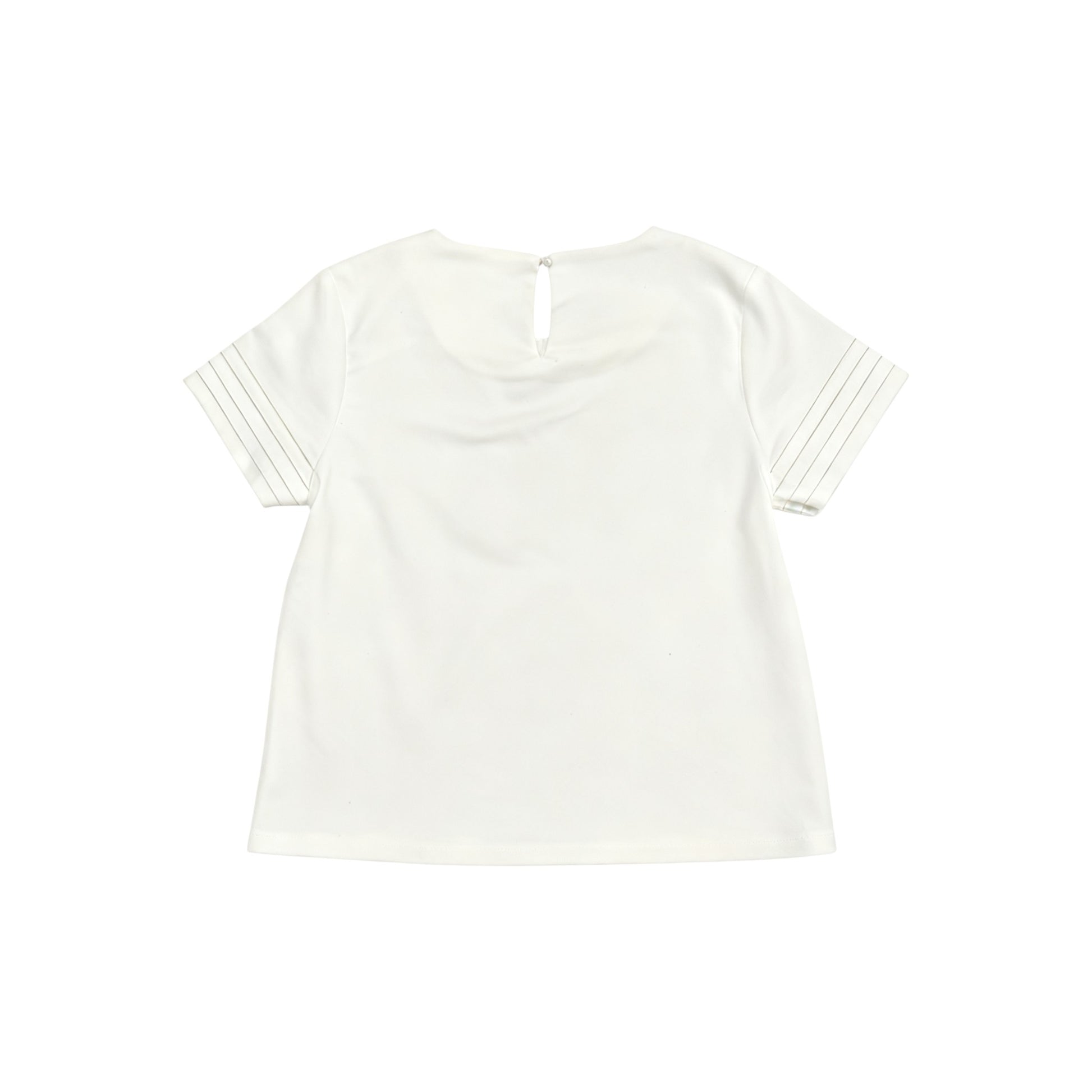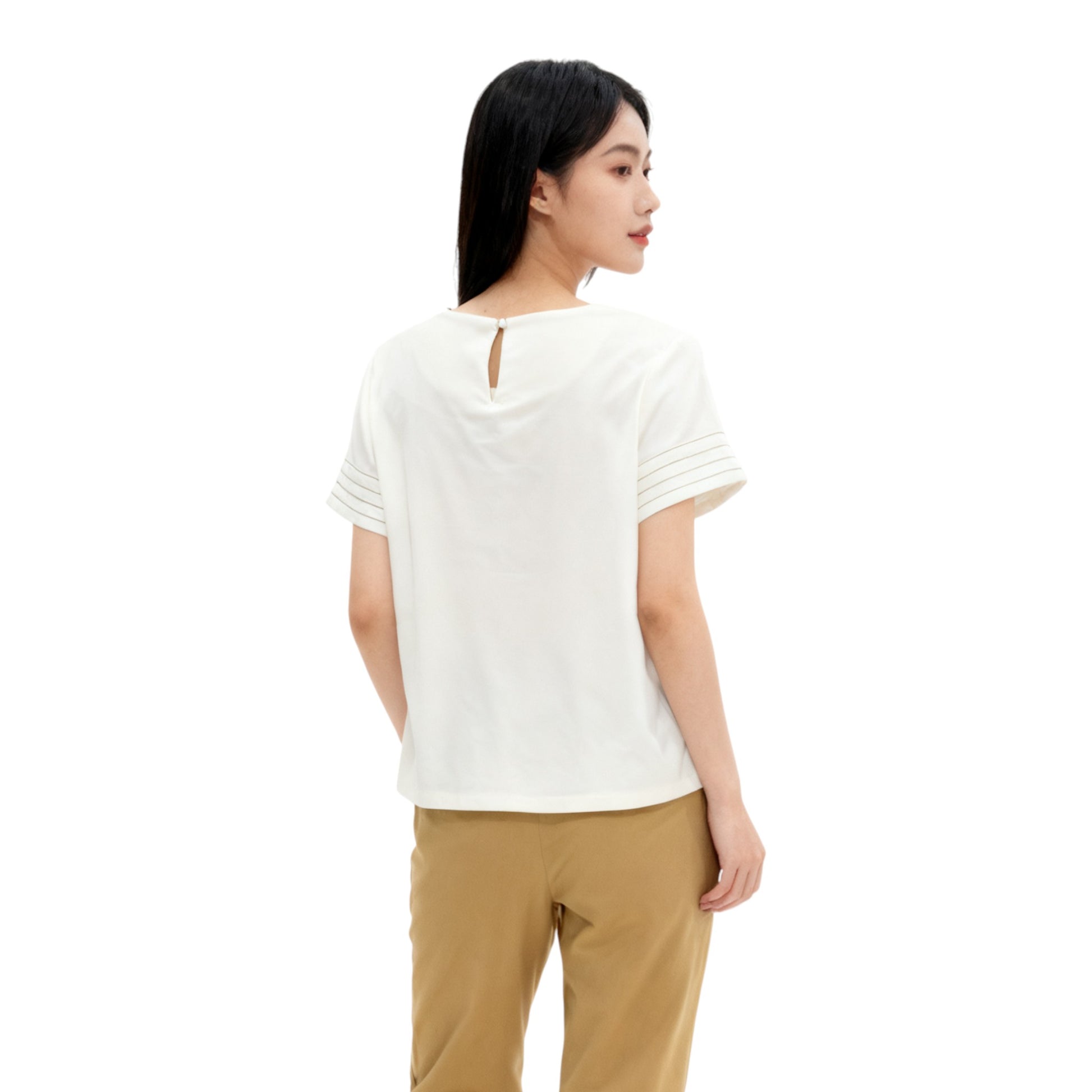 This white short-sleeved blouse brings tropical charm to a clean, modern silhouette. Crafted from a smooth woven fabric with a subtle sheen, it offers a lightweight and breathable feel—ideal for warm climates and everyday wear.
